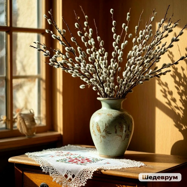 Но в северных широтах, включая Россию, пальмы не растут, поэтому их заменила верба — одно из первых растений, которое пробуждается после долгой зимы и распускает почки. Для славян она стала олицетворением жизни, возрождения природы и надежды на духовное воскресение человека. Именно благодаря этому биологическому свойству в русской православной традиции праздник и получил свое народное название — Вербное воскресенье. Освящение вербы происходит во время праздничного богослужения. Верующие стоят с зажженными свечами и веточками в руках, символически встречая Христа. Священник окропляет вербы святой водой, после чего они считаются церковной святыней. Освященная верба в доме — это не просто декоративное украшение интерьера, а видимый знак веры и напоминание о готовности христианина следовать за Богом. Принося вербу домой, её принято ставить рядом с иконами в «красном углу». Считается, что она приносит в дом мир и Божье благословение. Традиционно освященные ветви хранят целый год — до следующего Вербного воскресенья. Многие предпочитают не ставить вербу в воду, чтобы она не проросла и не завяла, а хранить её сухой, сохраняя пушистые почки в первозданном виде.
