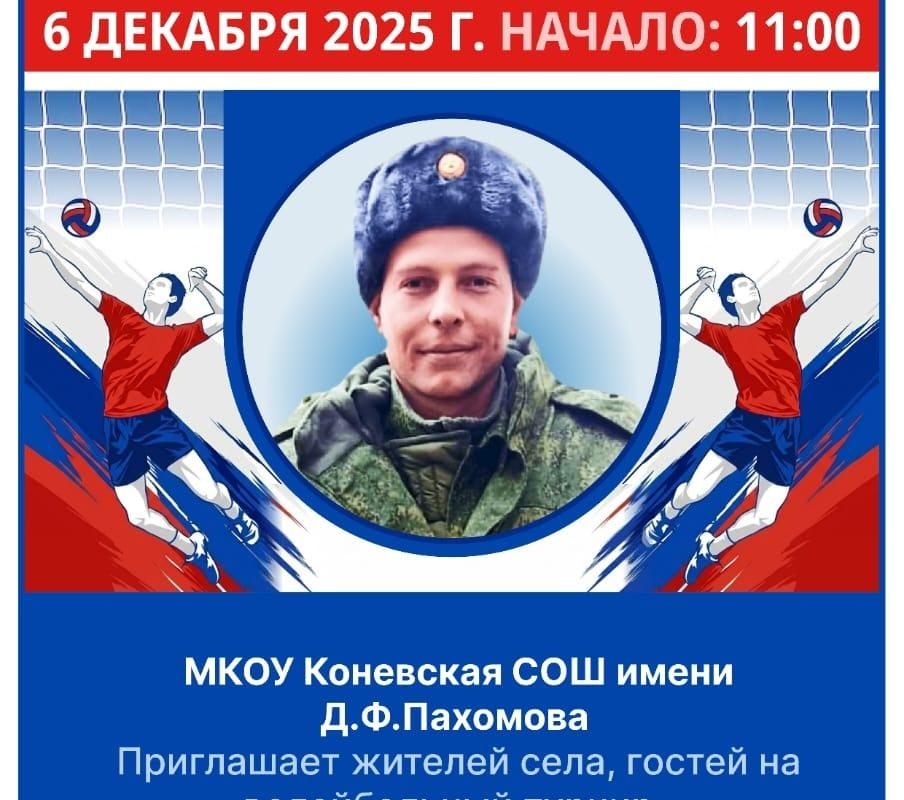Новости Коневская СОШ приглашает на турнир по волейболу памяти выпускника школы, погибшего на СВО 02.12.202503.12.2025
