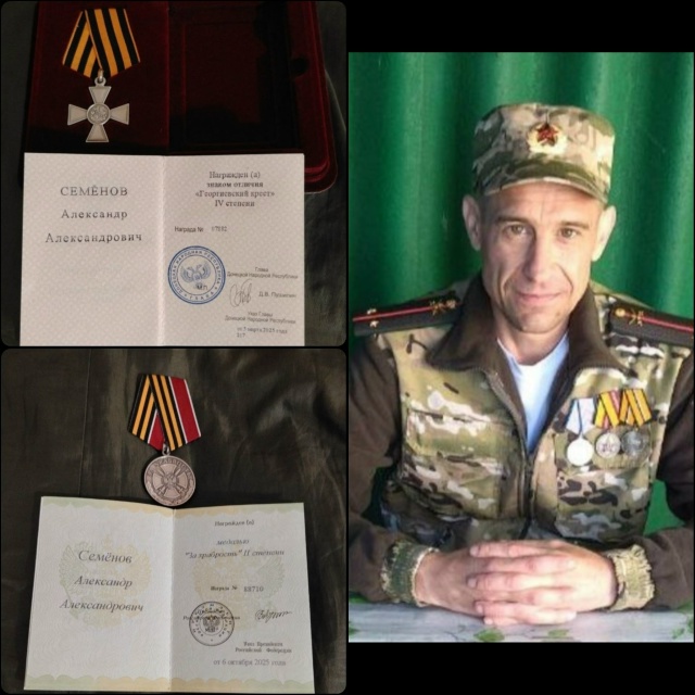 Наш земляк из села Половинное Александр Семенов за выполнение боевых задач в зоне СВО награжден медалью «За храбрость» II степени и «Георгиевским крестом» IV степени.Награды наконец-то нашли Героя и были вручены бойцу. Несколько месяцев назад А. Семенов во время выполнения боевых задач был серьезно ранен, долгое время находился в госпитале, восстанавливал свое здоровье. Но награды всё- таки дошли до бойца.Ранее Александр уже был награжден медалями «За боевые отличия», «За отвагу», «Участнику специальной военной операции».А. Семенов был мобилизован в зону СВО в сентябре 2022 года и вот уже четвёртый год вместе с другими краснозерцами стоит на защите наших рубежей. Рядом с Александром бок о бок отважно воюют и другие краснозерцы, которые тоже неоднократно были награждены. Это показатель мужества и отваги наших земляков!Гордимся нашим земляком и желаем скорейшего возвращения домой с Победой!
