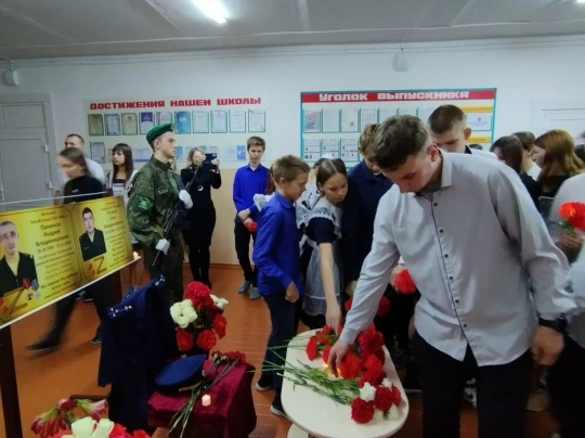 В торжественном строю — старшеклассники, педагоги, родные и близкие погибших героев, почетные гости — глава Краснозерского района Б. В. Луцкий, председатель Совета депутатов Н. В. Бабусенко и другие. Гимн России, поднимается знамя страны, звучат проникновенные слова признания солдатам, не пощадившим себя при выполнении боевых заданий.