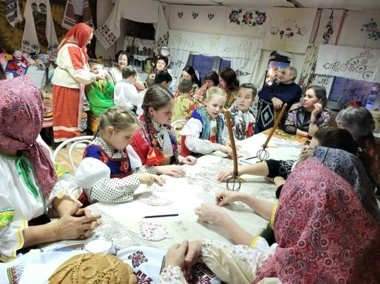 В Колыбельском ДК в клубе «Ярославна» прошли осенние посиделки под названием «Русский платок- душа России».На мероприятие пригласили почётных гостей. Встречали их ученики 4 класса с караваем и песнями. Ребята читали стихи и пели частушки о русских платках.Также все желающие могли принять участие в мастер-классе по украшению платков для матрёшек. Украшенные матрешки передали в группу «Тыл» для дальнейшей отправки нашим землякам на СВО.