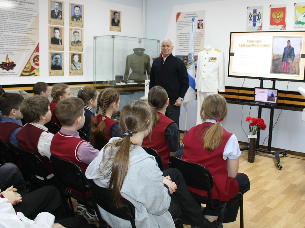 В преддверии Международного женского дня в Краснозерском художественно-краеведческом музее состоялась Всероссийский урок памяти «У войны не женское лицо».Ученики Краснозерского лицея № 2 им. Ф. И. Анисичкина от председателя Совета ветеранов Краснозёрского района Анатолия Петровича Бабусенко и сотрудников музея услышали рассказ о судьбах женщин из Краснозерского района, которые в суровые военные годы не только сражались на фронте, но и самоотверженно трудились на заводах и в полях, заменяя мужчин, ушедших защищать Родину. В завершение урока памяти, в знак глубокого уважения к тем, кто ковал победу в тылу и пережил войну в детстве, участники встречи возложили цветы к памятнику «Труженикам тыла и детям войны», отдавая дань памяти их подвигу.