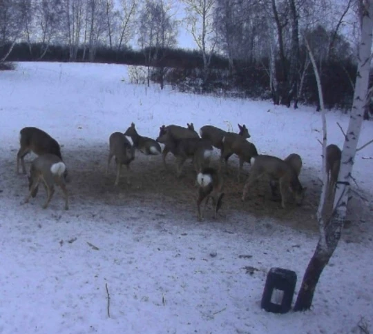 Выживать зимой диким животным тяжело, особенно косулям. Ведь им, зачастую, просто не удается добраться до подножного корма. Поэтому очень важны биотехнические мероприятия, которые помогут животным пережить зиму — заготовка сена и веников, засев полей кормовыми культурами, регулярная выкладка зерна осуществляется охотниками и государственным инспектором постоянно. В этом году температурные качели- оттепели и морозы, большой слой снега- в целом сложные погодные условия привели к тому, что диким животным трудно добыть пропитание. Для подкормки диких животных в Краснозерском районе заранее заготовили 5100 веников из березы и осины, 70 центнеров овса, 2524 центнеров сена, помимо старых, сделали и установили пять новых кормушек. Прошлой весной засеяли кормовые поля, на которые сейчас приходят подкормиться косули. В зимнее время к кормовым полям и кормушкам прочищают дорогу, чтобы животным легче было добраться. Подкормиться в «лесные столовые» приходят не только косули, но и кабаны. Это хорошо видно на фотоловушках, которые установлены рядом с кормушками.